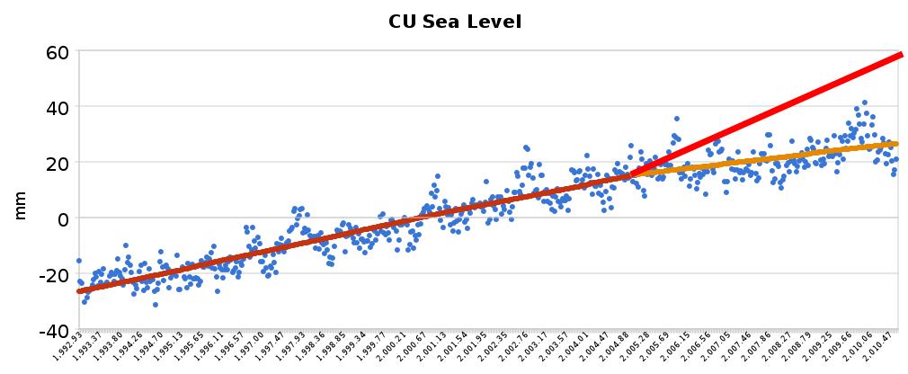 I think Somerville and other sea level CACA’s (Catastrophic Anthropogenic Climate Alarmists) are imprinting other real-world experiences on the sea level trend. For example, when making a right turn, some drivers, paranoid about running into the curb, will initially turn left before starting the turn right. The satellite altimetry data for sea level (that has been corrected using a handful of tidal stations) clearly shows a slowing in sea level rise. Does this only more firmly support and portend a catastrophic rise in sea level beginning in just a few years????