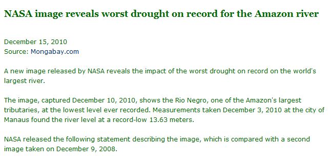 The rivers in the Amazon basin are prone to fluctuations. It was low in 2005, which they claimed was a 40 year low.