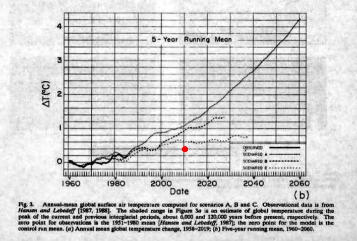 For those not aware GHGs are not following the proposed track shown by Hansen but exceeding it.