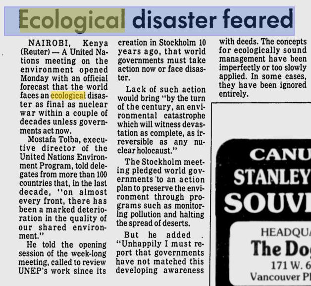 This is an important piece of evidence because predicts environmental calamity without pointing to a mechanism by which that calamity is supposed to come about. In 1982, the dangerous man-made global warming theory had not yet coalesced. But belief in environmental apocalypse was already quite mainstream. AGW theory is an artificially manufactured solution to a non-empirical question.