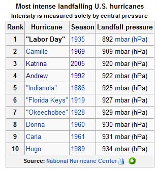 Only 3 of the top 10 the last 41 years. Global warming must not have very much to do with intense hurricanes.