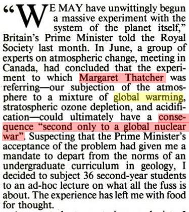 Margaret Thatcher 1988 : Global Warming “second only to a global nuclear war”