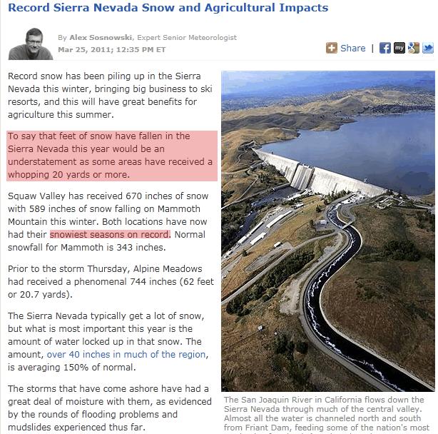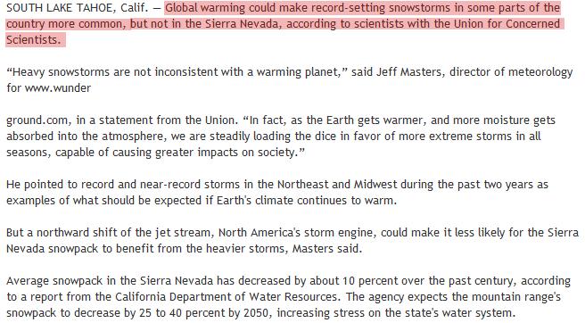 Last time I checked, a couple of years ago, NONE of the climate models on which the IPCC relies predict decreased precipitation for the Sierra Nevada over the next century in the face of rising CO2 levels; most predict a significant increase, and two predict more than a doubling in average precipitation.