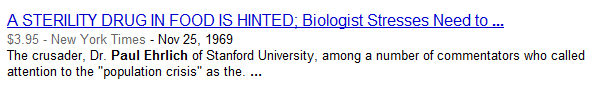 1969 : Ehrlich Advocated Poisoning The Food And Water Supply