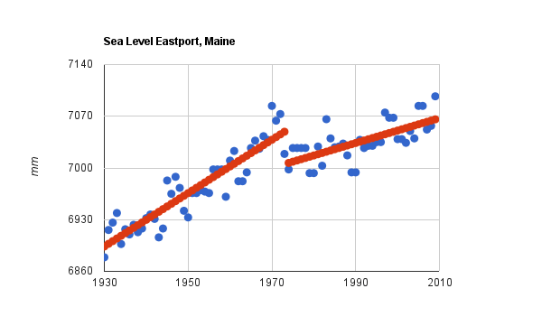 1 Response to Sea Level In Maine Rose 2X Faster Prior To 1970