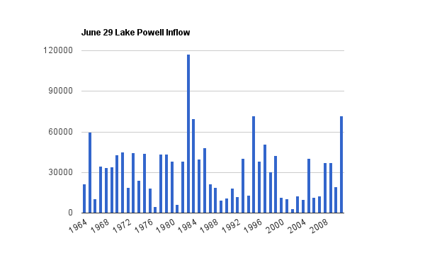 End of June inflow into Lake Powell is the second highest on record. The Obama administration warned last month that Lake Powell is drying up.
