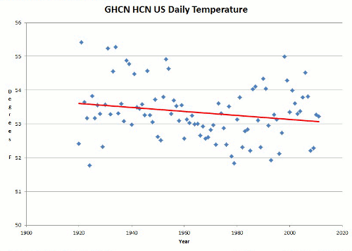 USHCN thermometers show a significant decline in US temperatures since 1920, with 1921, 1931 and 1934 being the three hottest years.