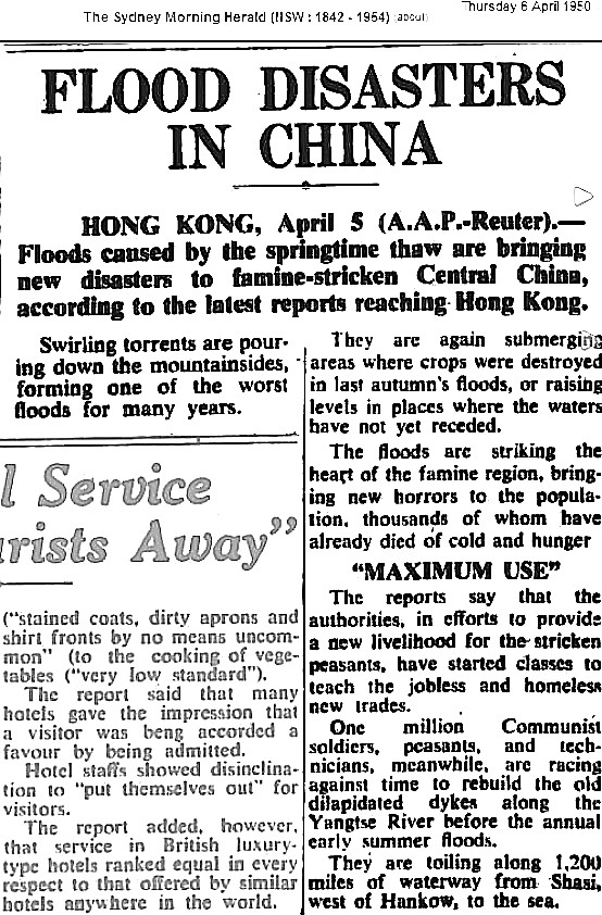 1950 : Floods, Famine Devastate China