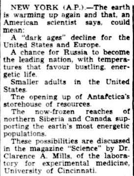 Science Magazine 1949 : Global Warming To Make Americans Shrink, Siberia To Dominate The World