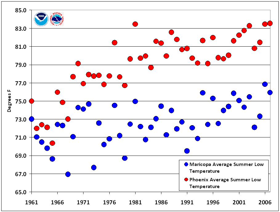 NOAA docs show 8F UHI in Phoenix, 80 times higher than what NCDC adjusts for.