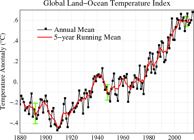 According to fraudulent GISS temperatures, Earth warmed 0.5C from 1910 to 1940, when CO2 rose 10 PPM. Since then, temperatures rose another 0.5C, with an increase of 80 PPM