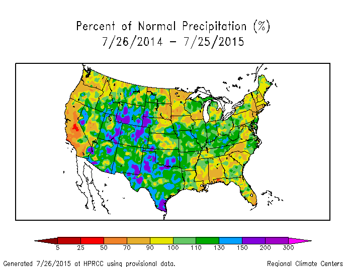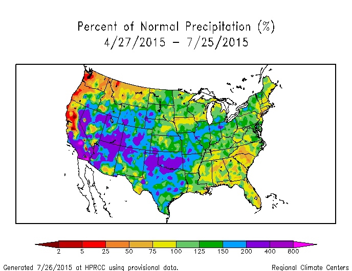 Los Alamos, New Mexico has received rain on 20 days this month, and is forecast to get rain the rest of the month and into August. It is the greenest anyone has ever seen.