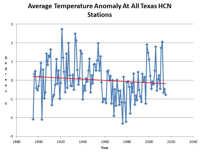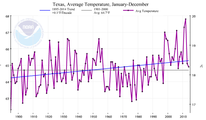 Texas temperatures have been declining over the past century