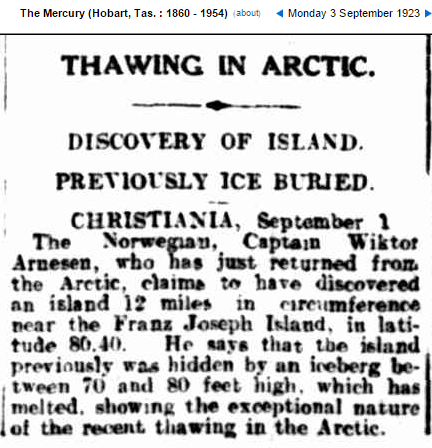 03 Sep 1923 – THAWING IN ARCTIC. DISCOVERY OF ISLAND. PREVIOUS…