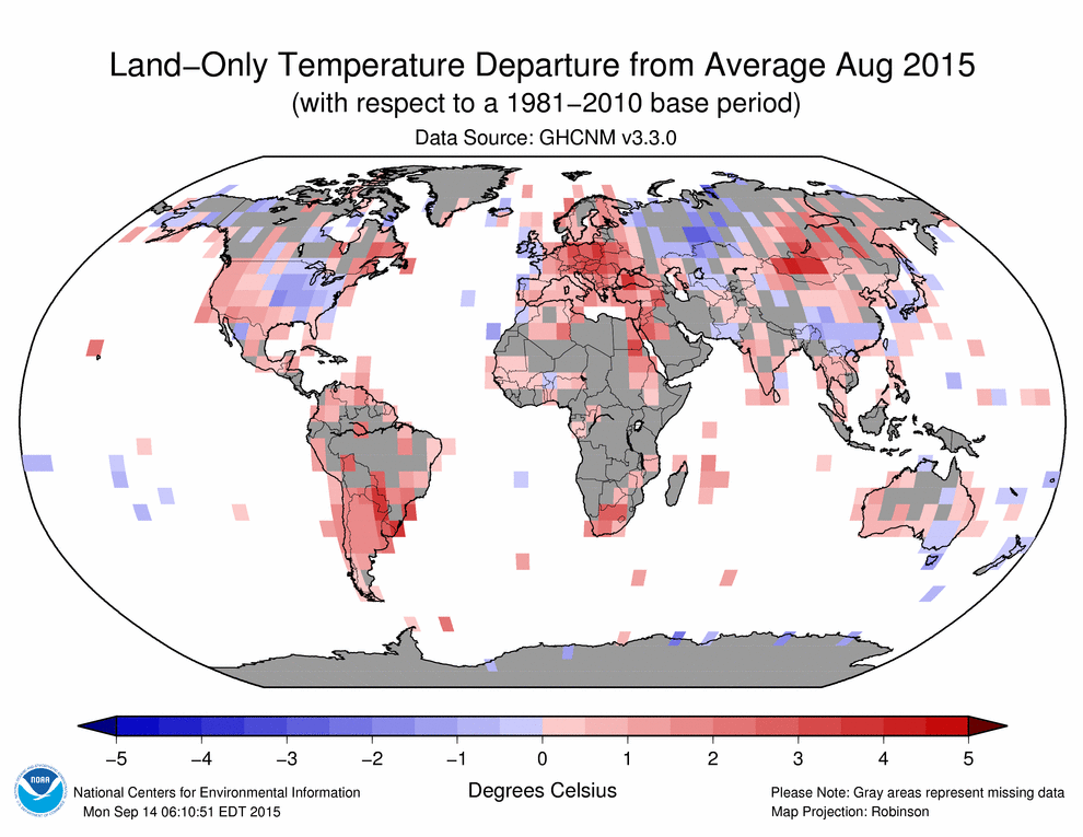 NOAA doesn’t actually have any data for most of the Earth’s land surface. They just make the data up.