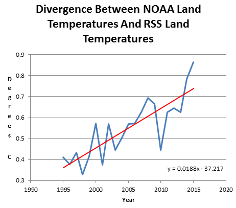 The fraudulent NOAA data is diverging from reality at 1.9C per century.
