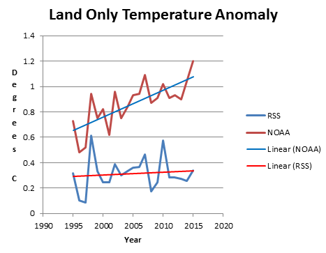 The fraudsters at NOAA have created a completely fake hockey stick of land warming over the last twenty years. It never happened.