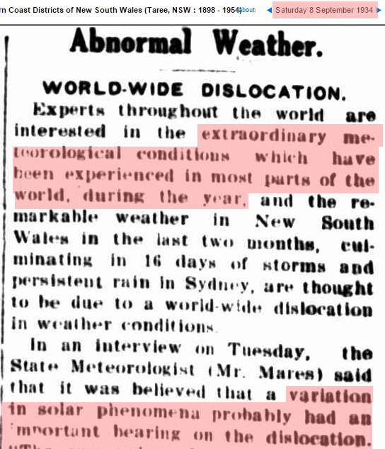 Instead of blaming humans like the current crop of brainless climate scientists do, scientists at the time blamed variations in solar activity.