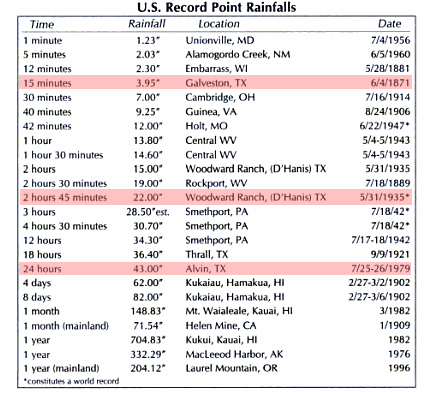 In 1979, the Houston area received 43 inches of rain in 24 hours, more than four times as large as this year’s fake record event. In 1935, Texas received 22 inches of rain in less than three hours.