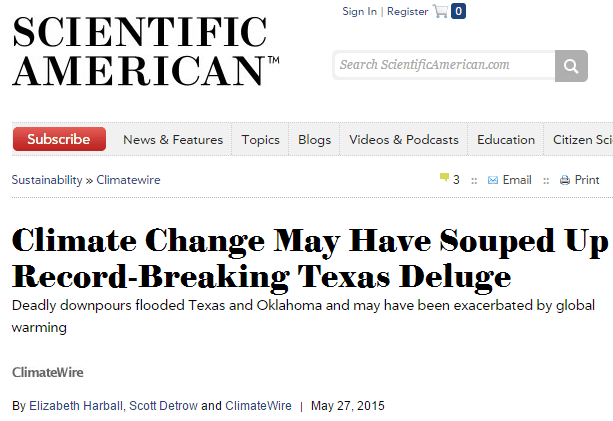 I seem to recall just a couple years ago Texas was in permanent drought. Whatever the weather is, they’ll look at you with a straight face and cherrypick that as evidence of “climate change.” It doesn’t matter that present conditions and predictions be diametrically opposite of and contradict previous conditions and predictions. Not at all. Drought, floods, whatever, the scamsters depend on the stupidity, short attention spans (or amnesia) of a gullible public, willing press and government officials to believe, and to keep carrying the Big Lie forward.