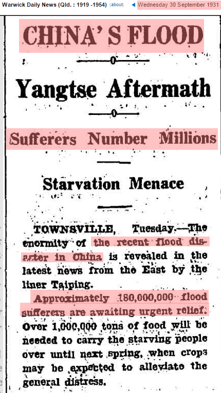 30 Sep 1931 – CHINA’S FLOOD Yangtse Aftermath Sufferers Number…