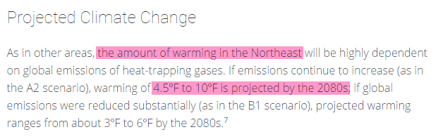 White House criminals predict 4.5 to 10 degrees warming in the Northeast, in defiance of all observed data, science and basic common sense.