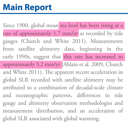 There is not one shred of evidence that sea level rise rates have increased, or that sea level rise rates change as CO2 increases. The rate of rise or fall at nearly every single long term tide gauge has been fixed for more than a century.