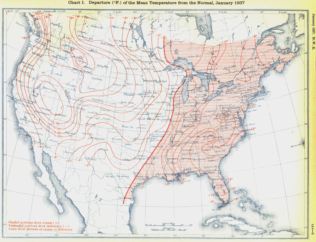 January 1937 was the coldest on record west of the Mississippi River, and the warmest on record east of the Mississippi. If this happened now, Bernie Sanders would call for immediate global communism to alter the jet stream.