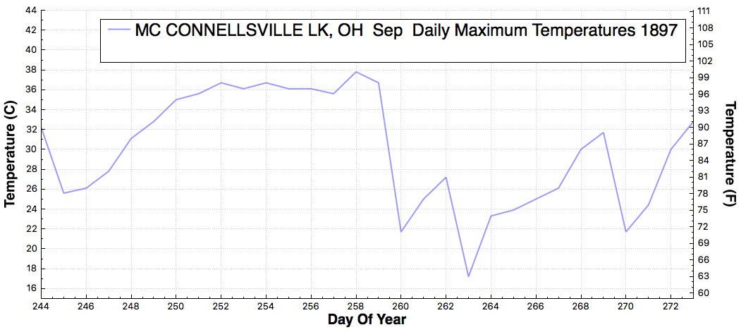 Ohio had an incredible heatwave during September, 1897. It took less two minutes to generate all of these graphs with my released software.