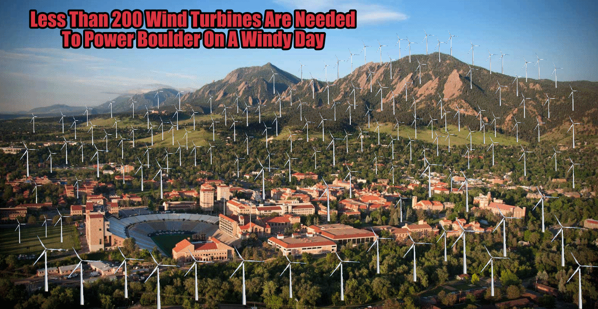 On a day when there is little wind, not even 10,000 wind-turbines would do it for Boulder.