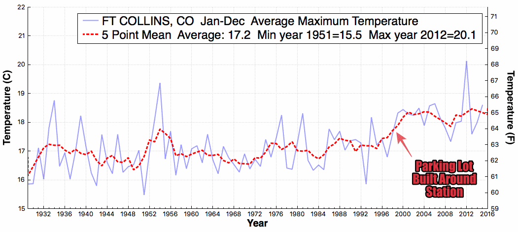 I am waiting for a CAGW enthusiast to explain it. “It’s not the parking lot! It’s all that CO2 that the automobiles emitted! That’s what warmed things up!”