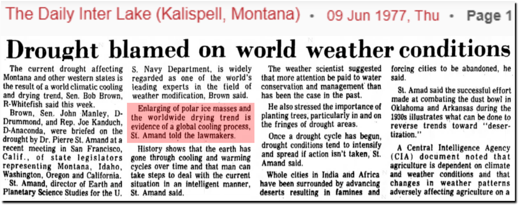 The 1977 drought was blamed on global cooling and expanding Arctic sea ice.