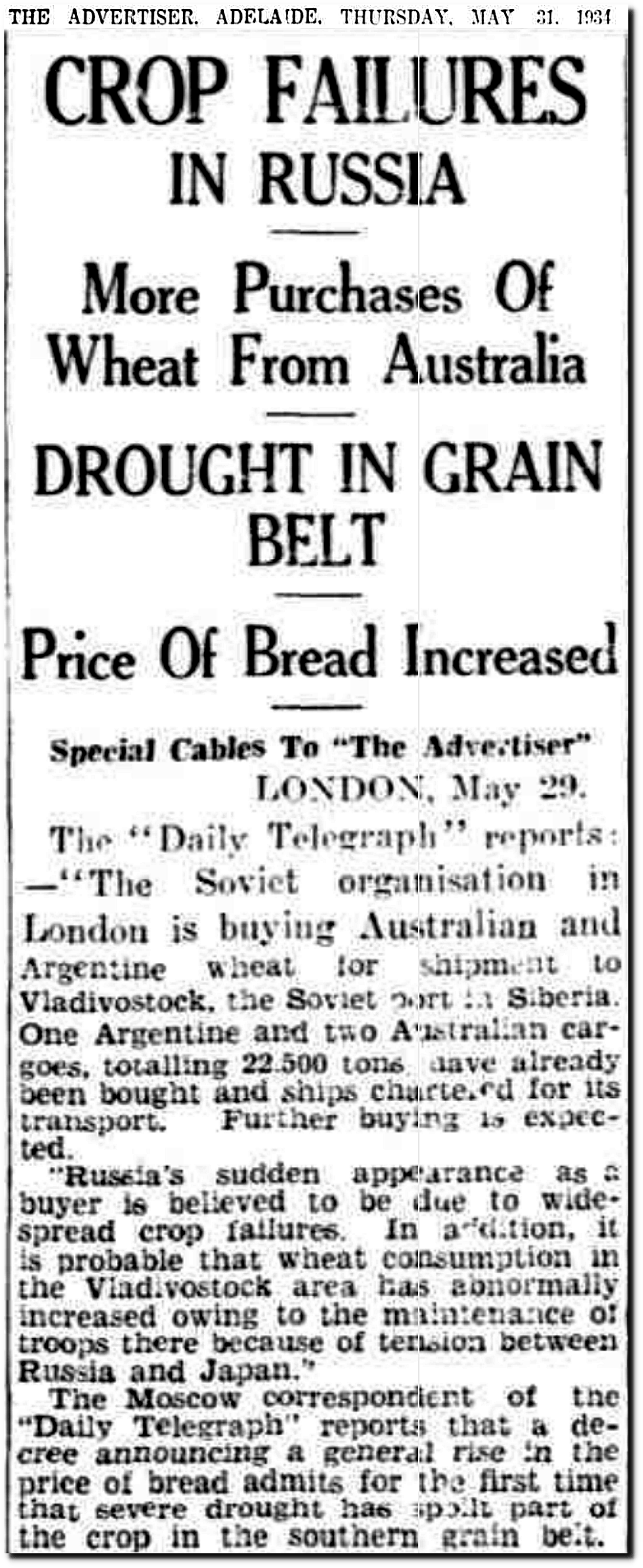 31 May 1934 – CROP FAILURES IN RUSSIA – Trove