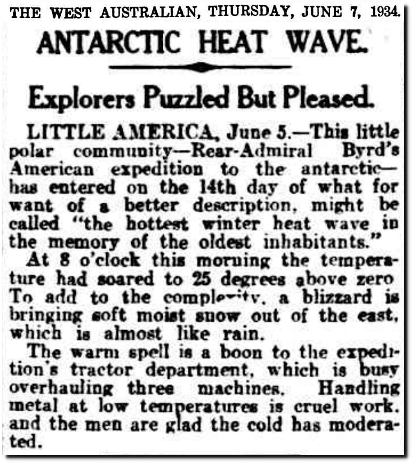 07 Jun 1934 – ANTARCTIC HEAT WAVE. – Trove