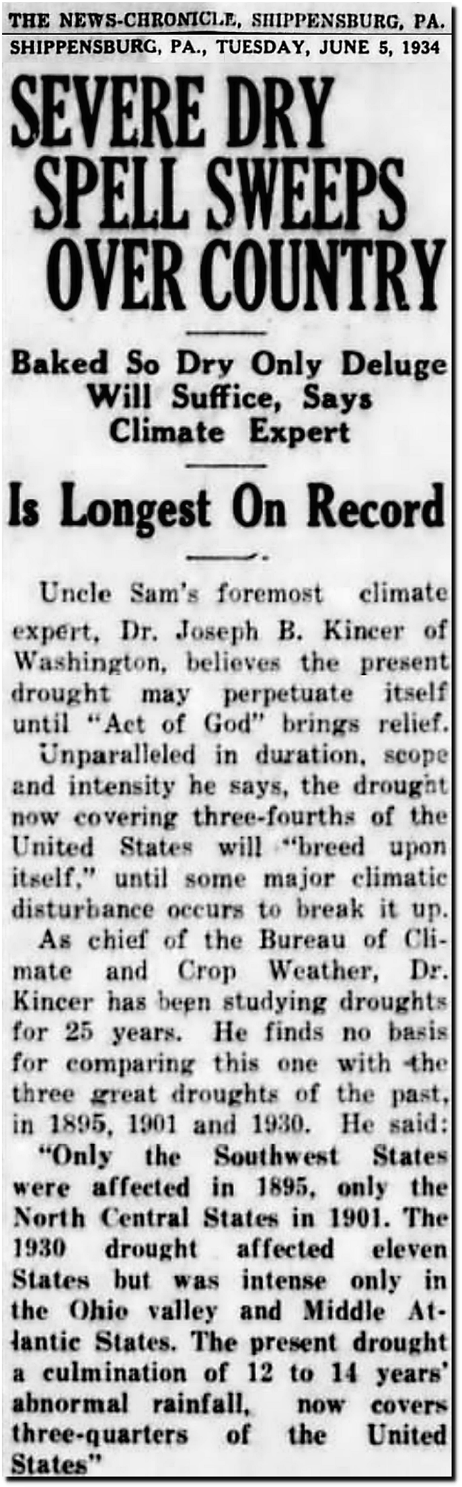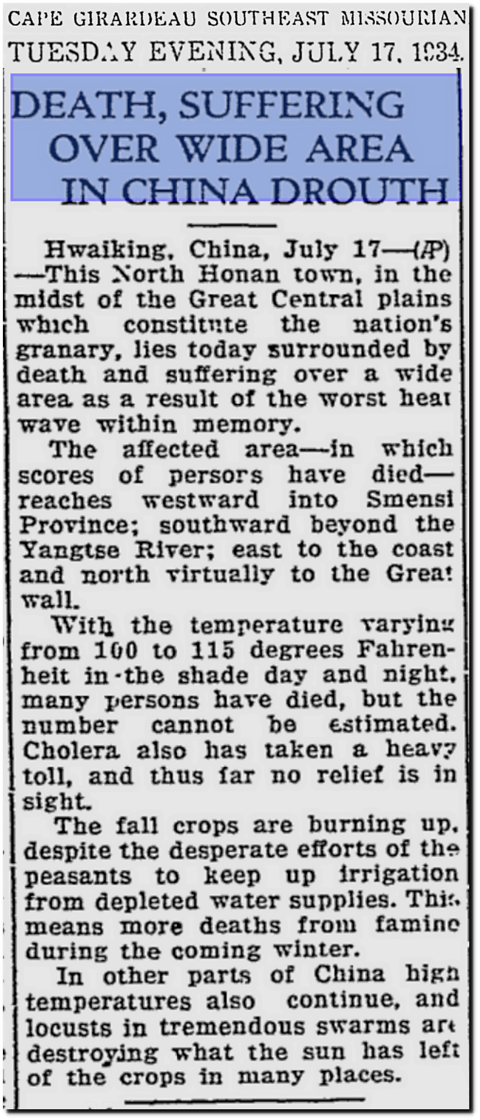 1934 and 1936 were unprecedented years for heat and drought in US. But the extreme weather wasn’t just in the US – it was global. Click on the 1934 LA Times below to see it full sized.