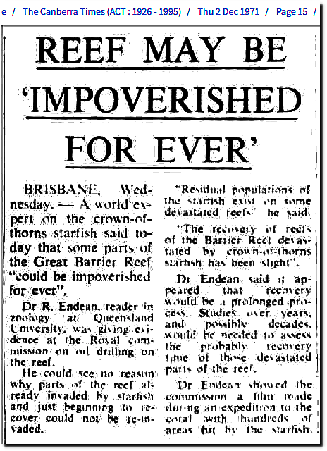02 Dec 1971 – REEF MAY BE IMPOVERISHED FOR EVER’ – Trove