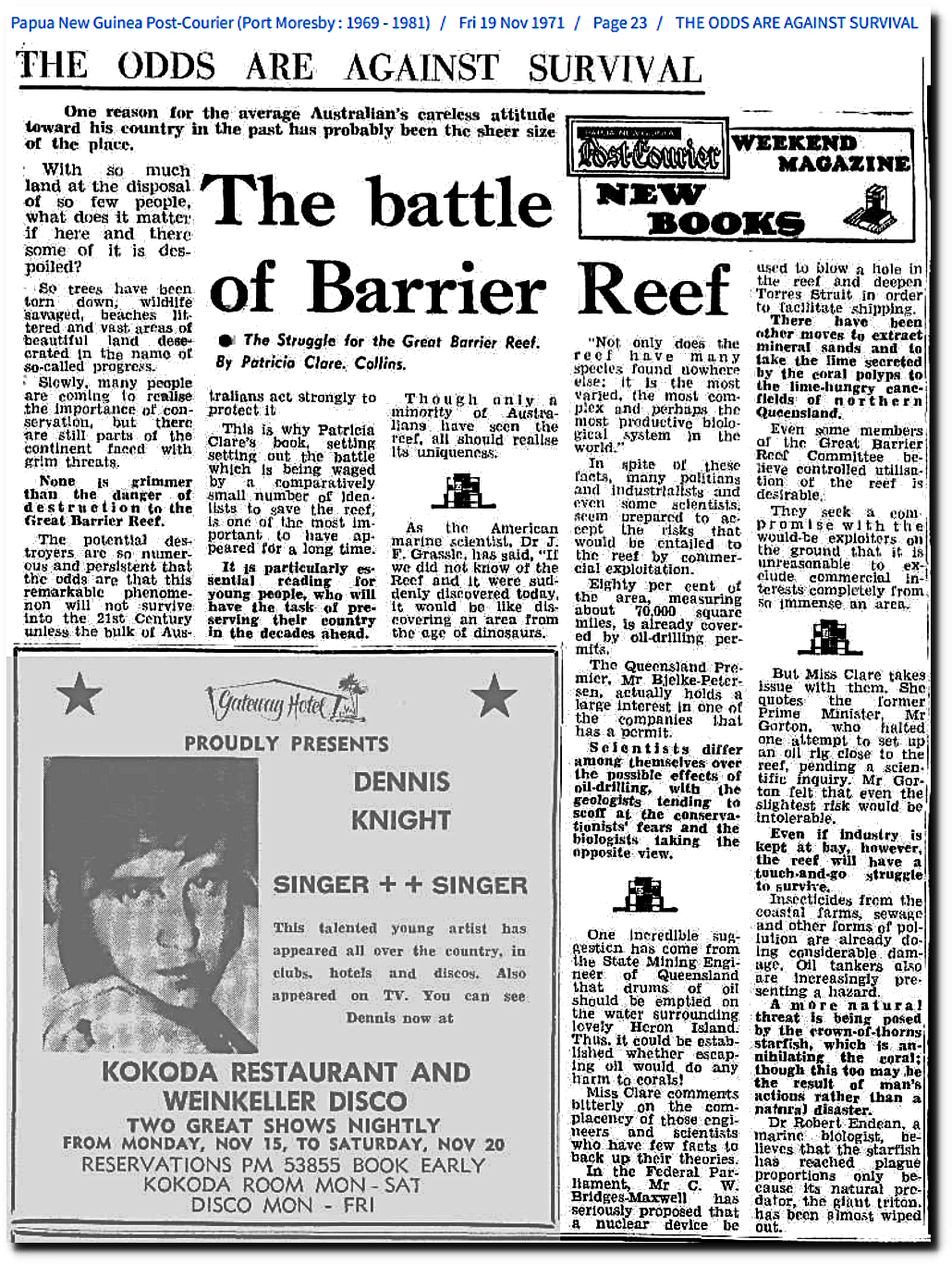 19 Nov 1971 – THE ODDS ARE AGAINST SURVIVAL – Trove